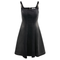 - Women's black washed denim A-line mini dress with metal strap detail