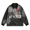 Retro Dark Graffiti Print Mottled Spider Letter Denim Jacket