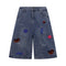 Embroidered Patch High Waist Wide Shorts