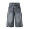 Starry Denim Bermuda Shorts Distressed Wash Colorful Accents