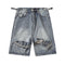 - Trendy streetwear shorts with a relaxed fit and bold distressed design