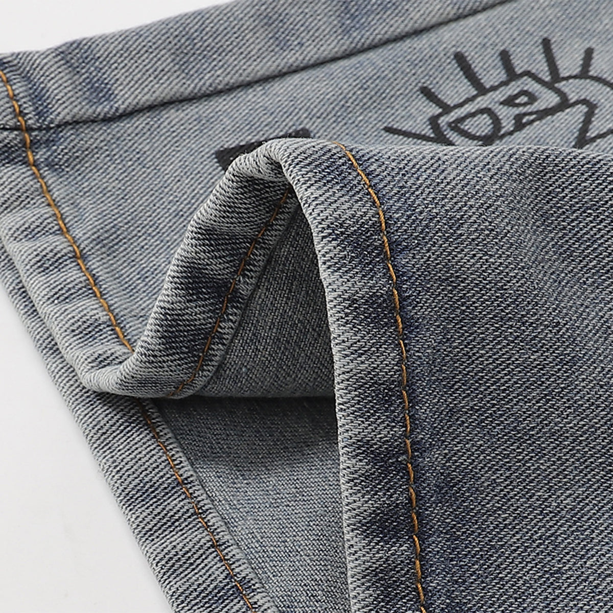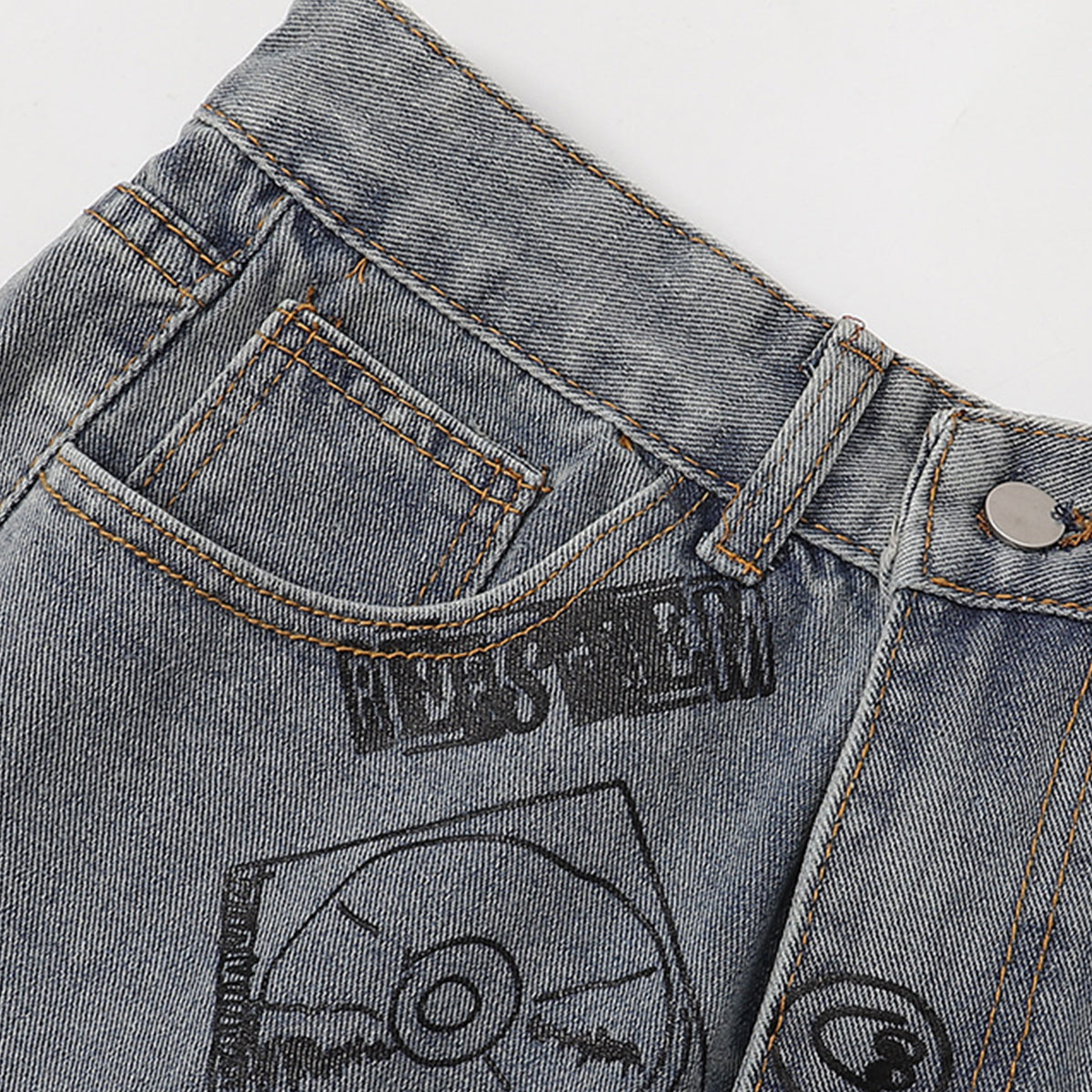 Street Style Graphic Print Relaxed Denim Shorts
