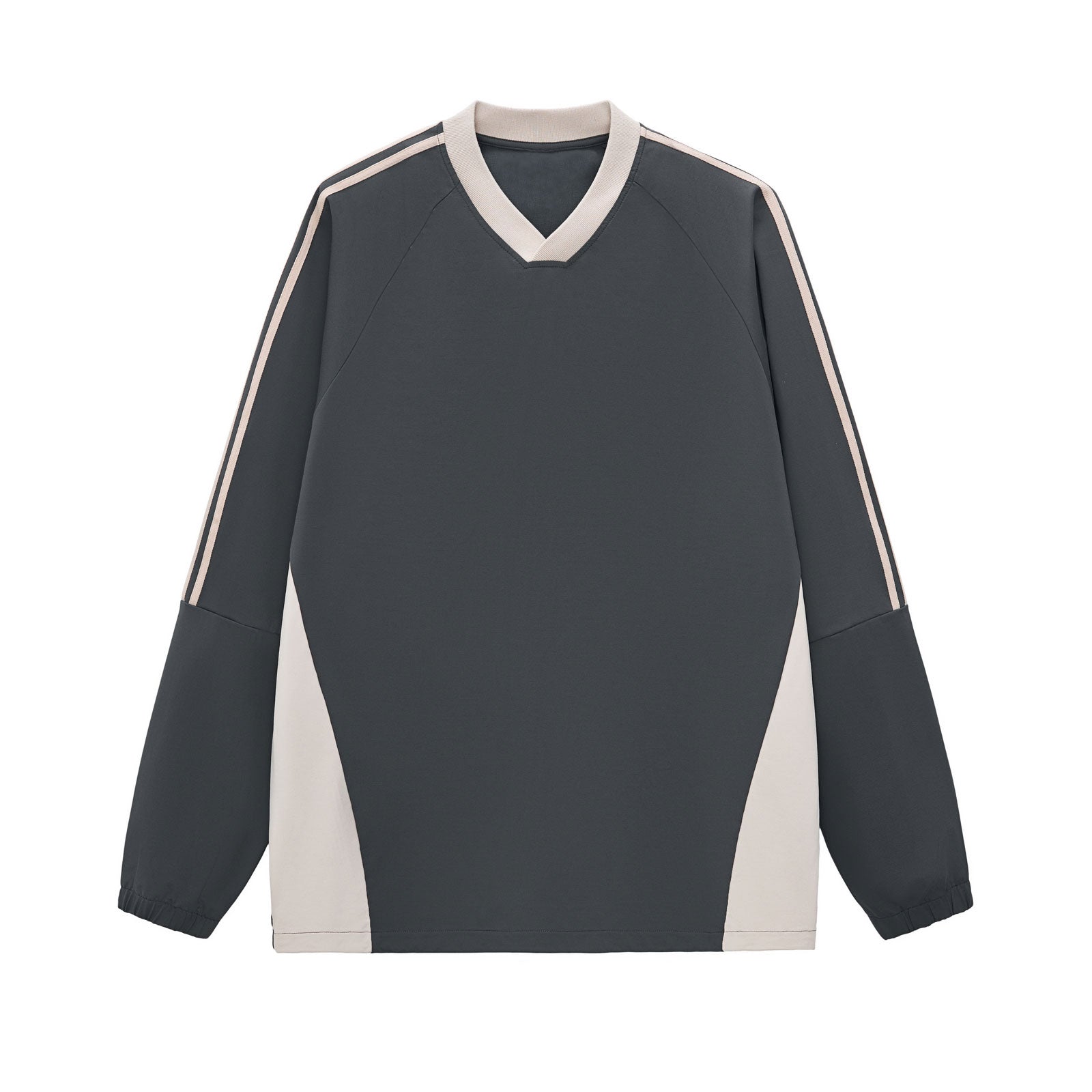 Contrast Stripes Two-Tone V-Neck Sweatshirt