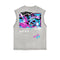 Distressed Sleeveless Graffiti Style Pattern Tee