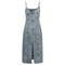 - Women's denim bodycon midi dress – sleeveless spaghetti strap jean dress with back zipper