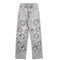 • Vintage-wash jeans with hand-beaded embroidery and floral cut-out details