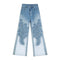 Organza Patchwork Floral-Embroidered Bootcut Jeans